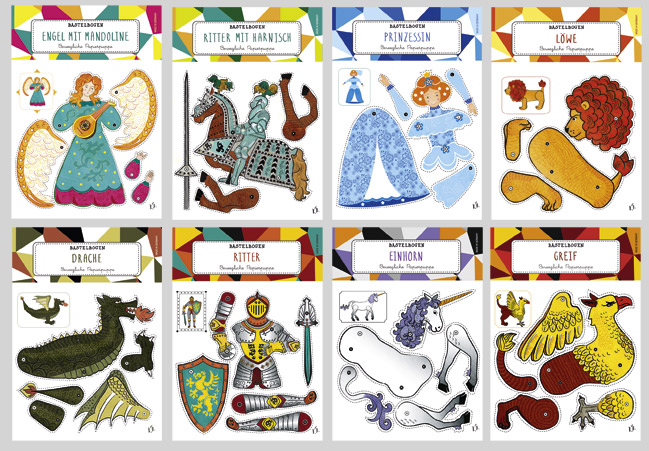 Bastelbögen , Buttons-Träger, Puzzlepostkarten, Pop-Ups oder Faltkarten... alles in meinem bestechend schönen, farbenfrohen Design. Lassen Sie sich inspirieren!